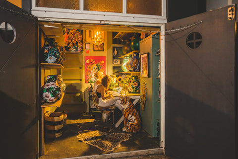 "In het kleinste atelier van Nederland maakt Sharon samen met Raisa de meest bijzondere kunstwerken. Ieder stuk voor stuk gemaakt met veel liefde, ambacht en passie.